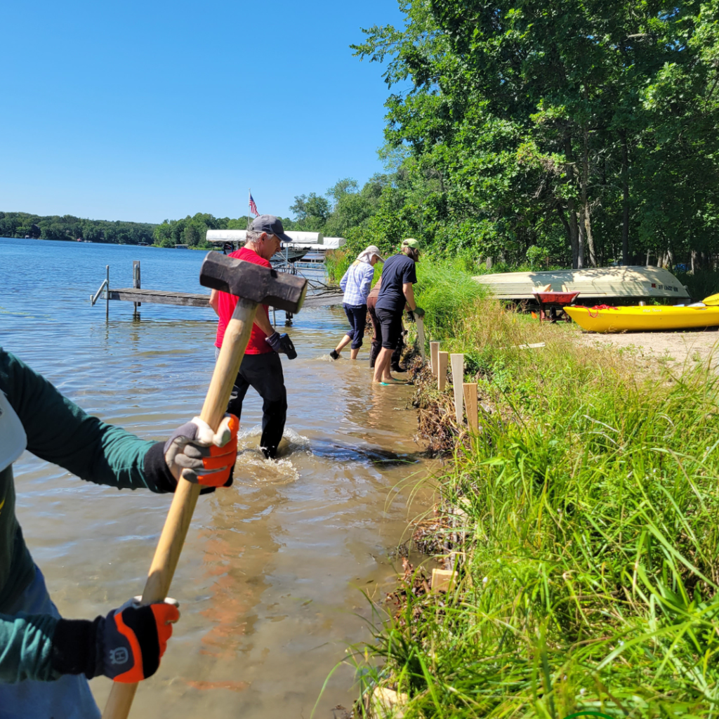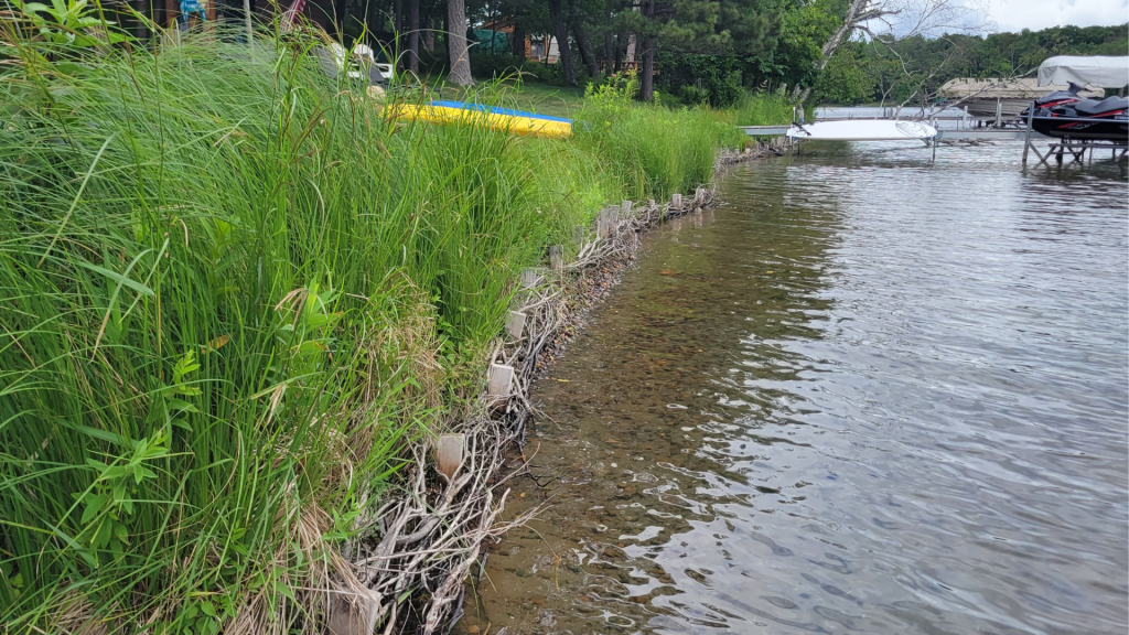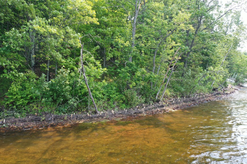 We talked to the landowners about their project expectations, evaluated the state of the shoreline and gathered information to design a plan accordingly. This shoreline had some signs of erosion, with undercut in certain areas.